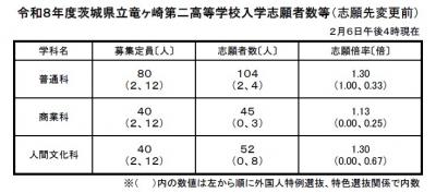 令和8年度茨城県立竜ヶ崎第二高等学校入学志願者数等(志願先変更前)