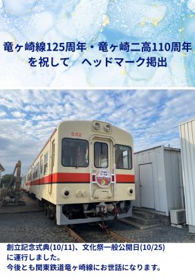 関東鉄道竜ヶ崎線125周年と本校110周年を祝し、記念のヘッドマークを掲出した列車が運行されました。
